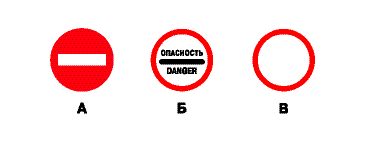 Дальнейшее движение всех ТС, в том числе и маршрутных, запрещает знак 3.17.2 "Опасность" (знак Б). Такая необходимость может возникнуть в связи с дорожно-транспортным происшествием, аварией, пожаром и т. п. Знак 3.1 "Въезд запрещен" (знак А) запрещает въезд всех ТС, кроме маршрутных ТС. Знак 3.2 "Движение запрещено" (знак В) запрещает движение всех ТС, кроме маршрутных ТС и ТС, принадлежащих инвалидам I и II групп или перевозящих таких инвалидов. Действие знака не распространяется также на ТС, обслуживающие предприятия или граждан в обозначенной зоне или принадлежащие гражданам, проживающим или работающим там.